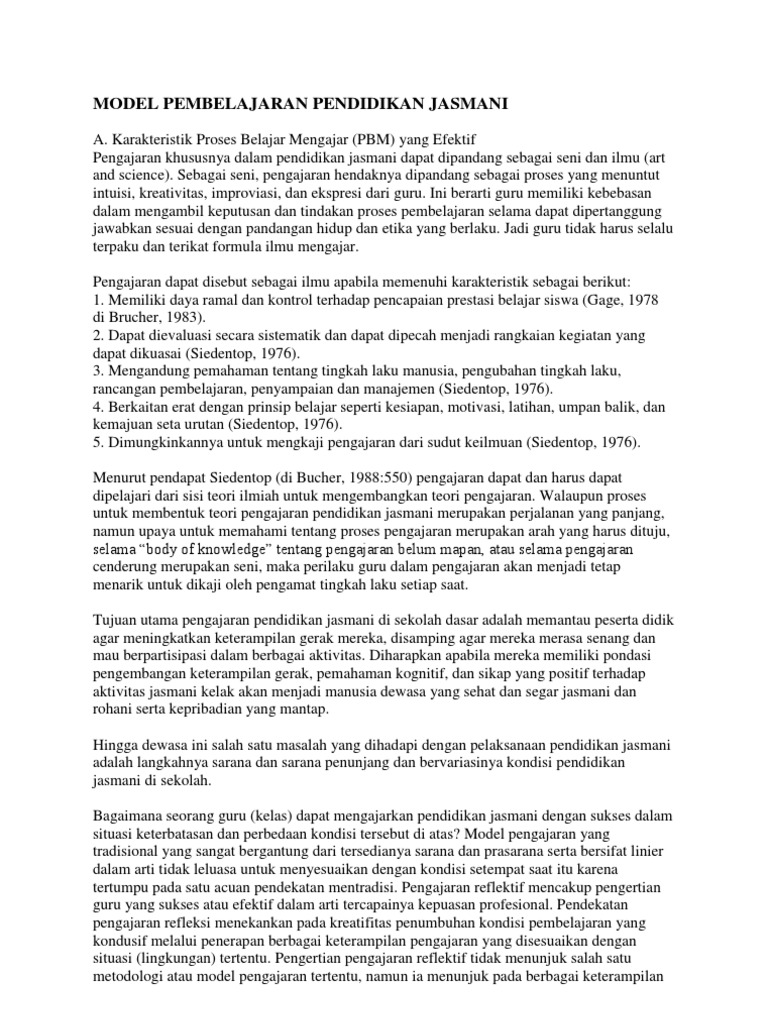 Pdf Model Pembelajaran Dalam Pendidikan Jasmani