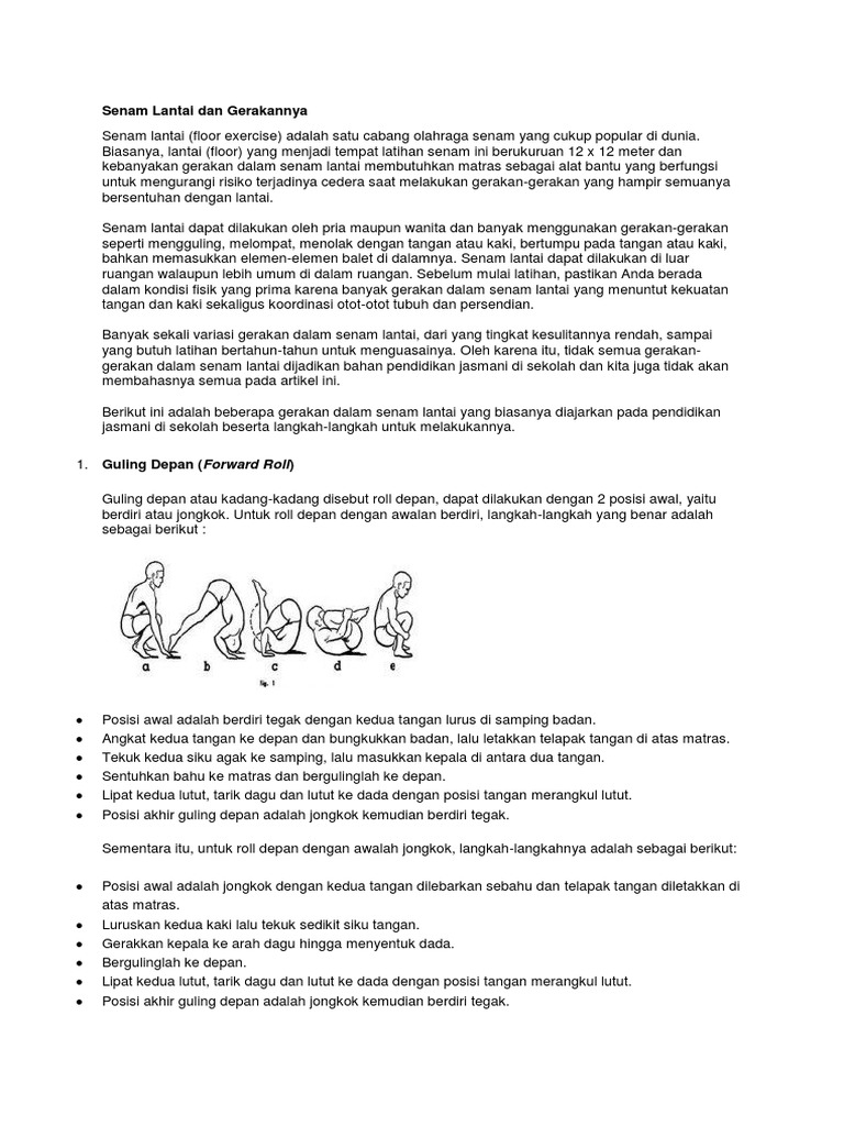 Pengertian senam lantai flour exercise. Senam merupakan bentuk latihan fisik yang disusun secara sistematis dengan tujuan untuk mencapai daya tahan kekuatan kelentukan koordinasi membentuk prestasi membentuk tubuh ideal dan memelihara kesehatan. Senam Lantai Pengertian Sejarah Teknik Manfaat Peraturan. Senam Lantai disebut juga senam bebas karena Pesenam tidak menggunakan alat bantu selain lantai matras.