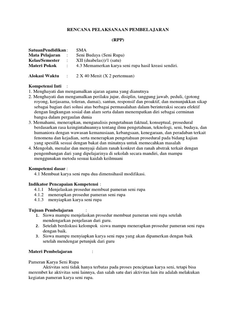Doc Makalah Pameran Seni Rupa Untuk Sma Kelas X Ipung Siregar Academia Edu