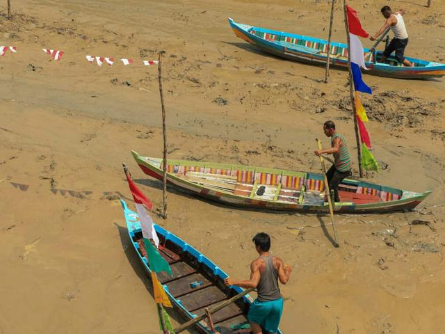 Semangat Pagi Melihat Keseruan Sampan Leper Melintasi Lumpur Sungai Regional Liputan6 Com