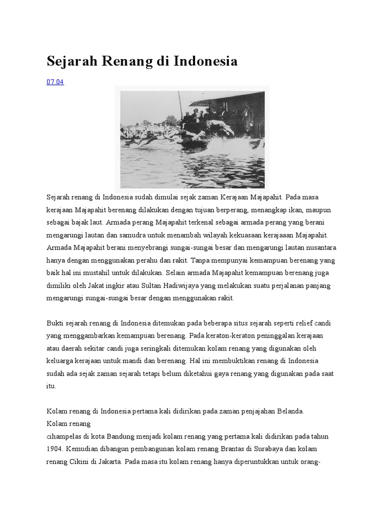 Sejarah Renang Di Indonesia Singkat Dan Perkembangannya