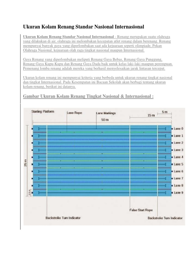 Ukuran Kolam Renang Standar Nasional Internasional Fina Gambarnya