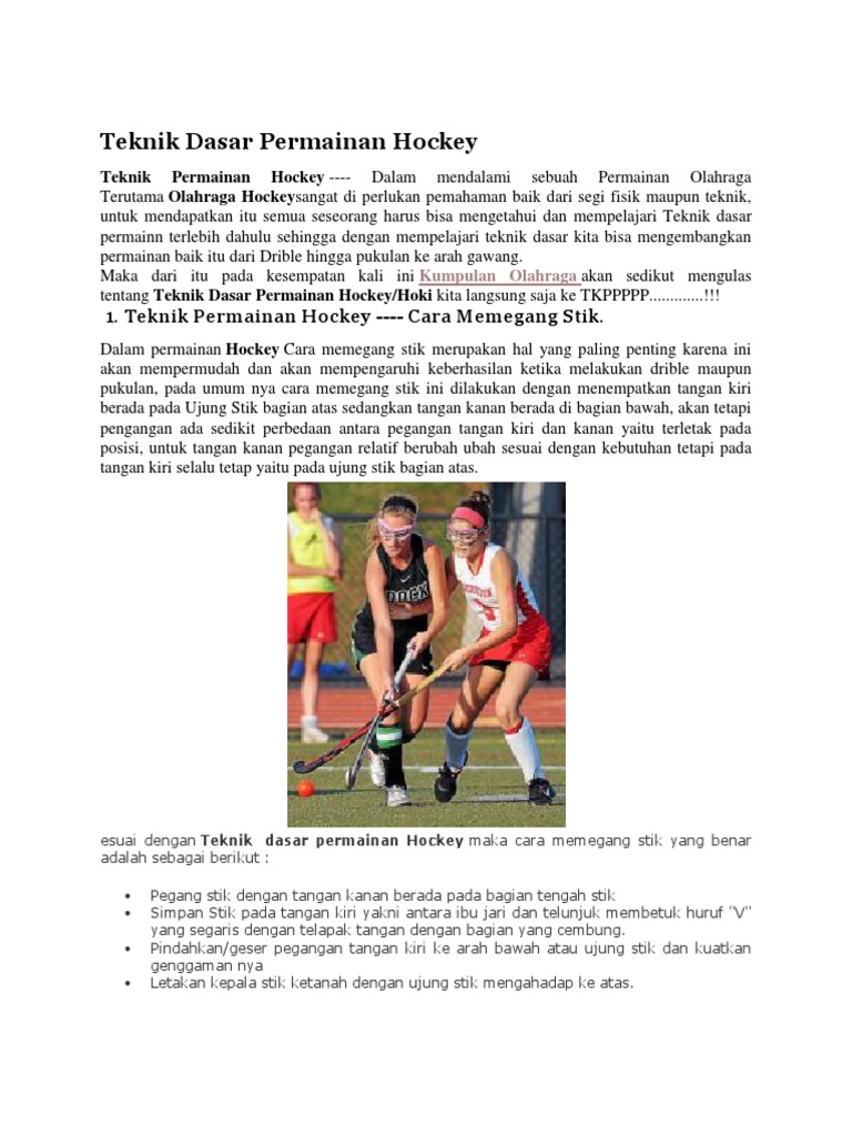 Teknik dasar olahraga hoki lapangan. Gerakan Pemanasan Dan Teknik Dasar Olahraga Hockey. Dalam menerapkan metode mengajar teknik dasar ada beberapa langkah yang harus diperhatikan yaitu. Teknik Dasar Hoki Hoki adalah sebuah jenis olahraga atau permainan yang dapat dilakukan oleh wanita dan juga pria di mana alat utama yang digunakan adalah alat pemukul berupa stick dan juga tentu ada bolanya juga.